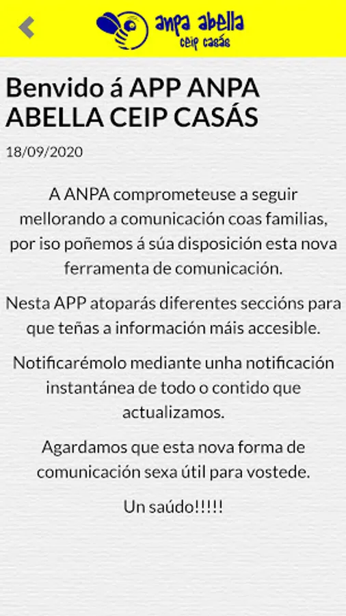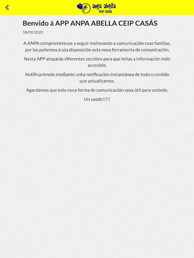Dende esta APP, manterémoslle informado mediante notificacións instantáneas de todas as actividades, noticias e eventos que levamos a cabo, tamén lle enviaremos toda a información que entendemos que é do seu interese na educación dos seus fillos.