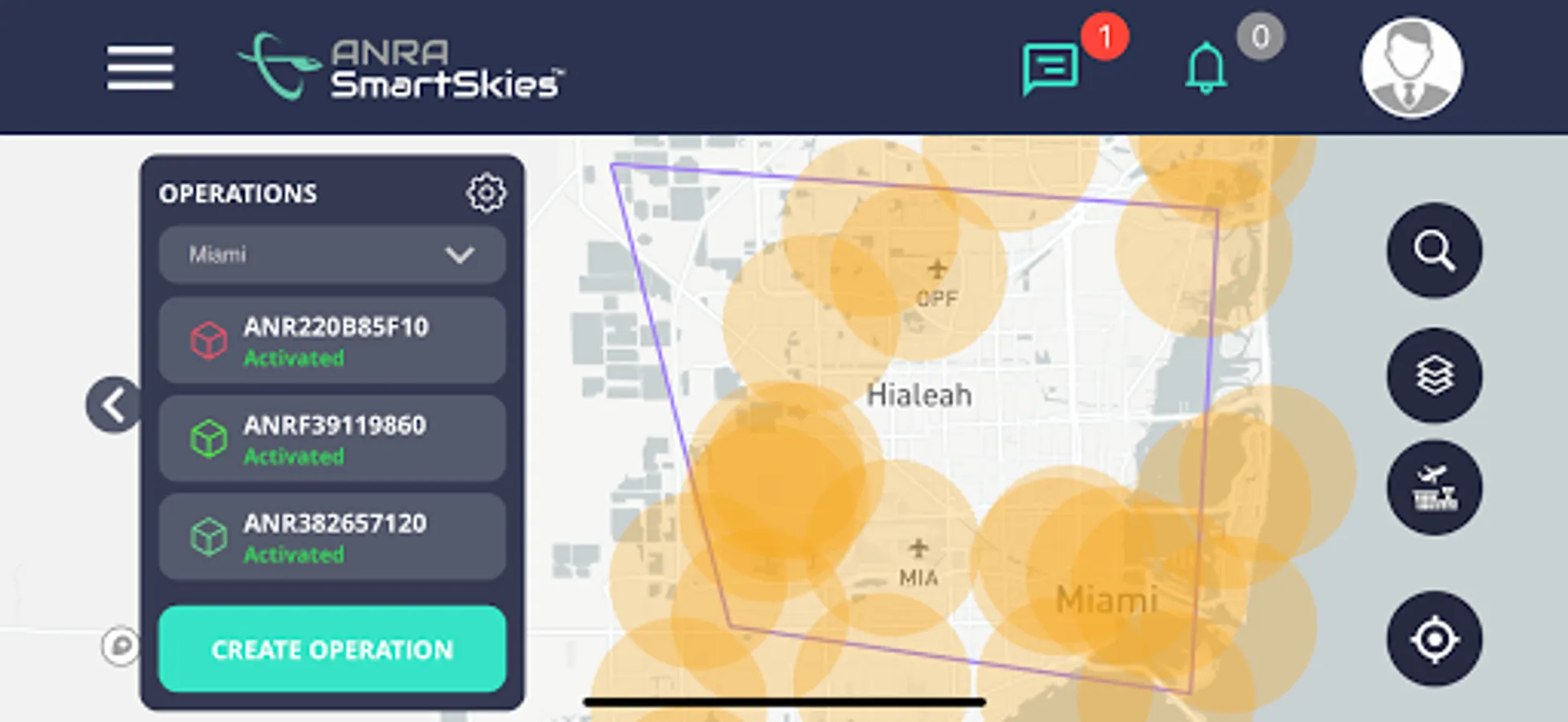 ANRA CTR  facilitates planning your operations through an easy-to-use interface. This planning is informed through a rich, integrated data set that includes aeronautical data sources, custom dynamic airspace zones, weather, and terrain. As an FAA-approved LAANC UAS Service Provider, ANRA CTR allows drone pilots to obtain approval for drone operations within controlled airspace through real-time, automated processing based on criteria set by the FAA.