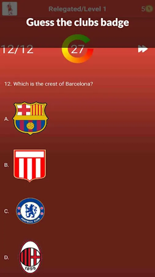 * Guess the football badges - you should guess the correct badge of the soccer clubs.