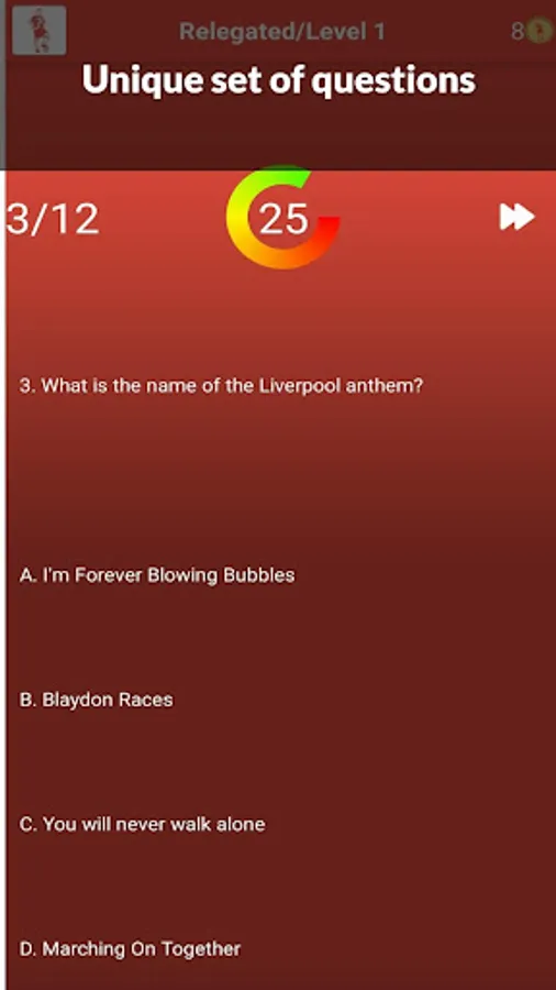 This football quiz game is different and if you are one of the millions of the football fans out there you should try it. Our soccer trivia game has unique selection of football trivia questions which include interesting football facts questions, guess the football badge, managers, football history, stadiums and others. We chose clubs from all around the world and separated them in 4 categories with 3 levels each. If you progress you will face hard football questions and you will unlock new achievements. Could you complete this soccer quiz and prove your football knowledge?