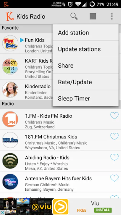 Kids Radio - The Radio App for children and parents! Many kid songs and stories radio stations can be found here.