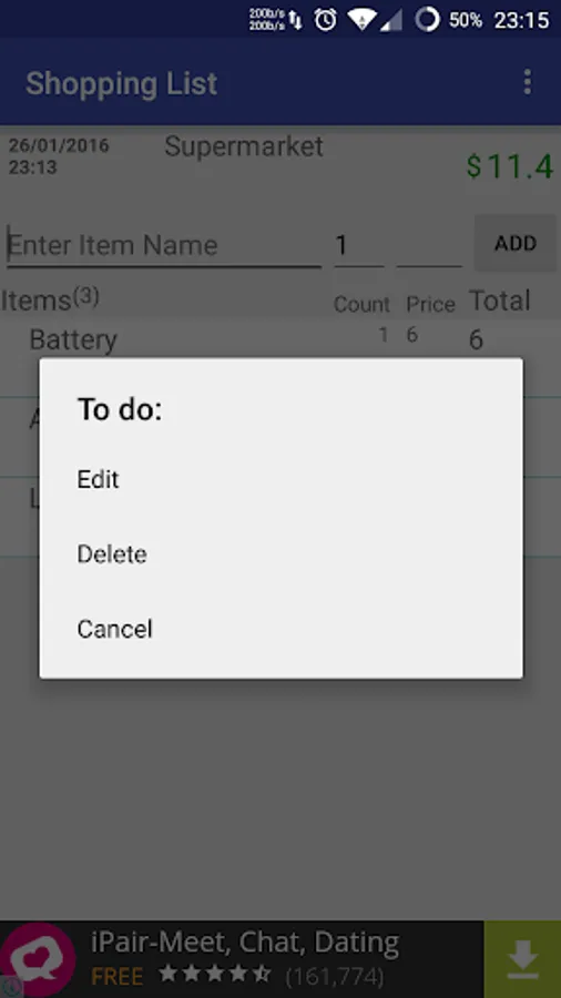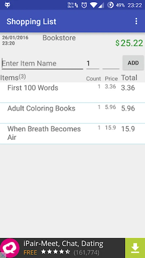 Simply enter the name of goods, quantity and price, we will help you record and calculate the total price of your shopping list. Multiple shopping lists supported