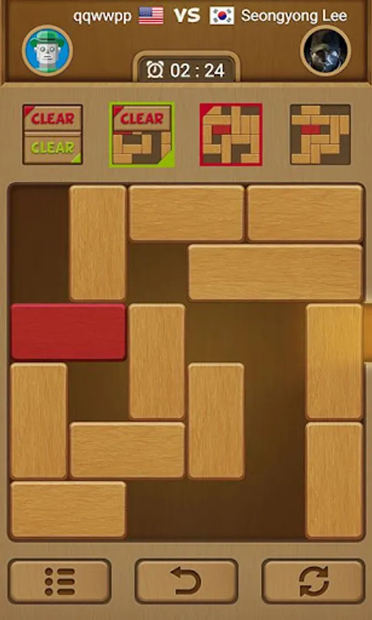 Unblock the red block out of the board by sliding the other blocks out of the way.