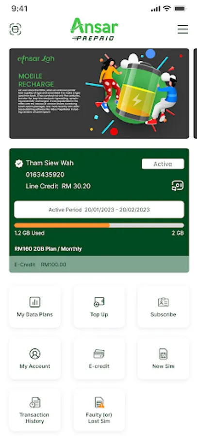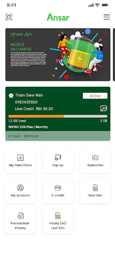 An Ansar Mobile subscriber app. This app allows our Ansar Mobile prepaid line subscriber to check the status of their line, perform Top Up, subscribe to Passes. The user can also check on their personal details that is used for the mobile line registration. Additionally, a new subscriber can perform a Self SIM Registration to register their new SIM Cards. Ansar Mobile is a Malaysian MVNO.