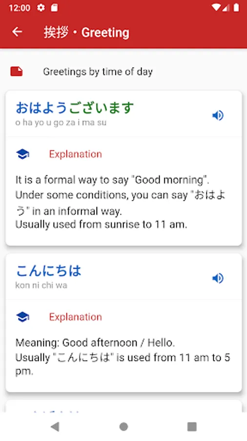 This is an app that teaches basic knowledge of Japanese language. It is mainly for beginners in Japanese learning. This app is a short and easy collection of basic greetings, phrases, etc. Recommended for beginners to learn Japanese.