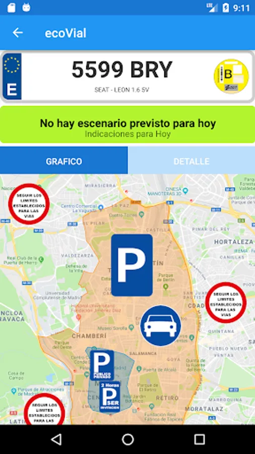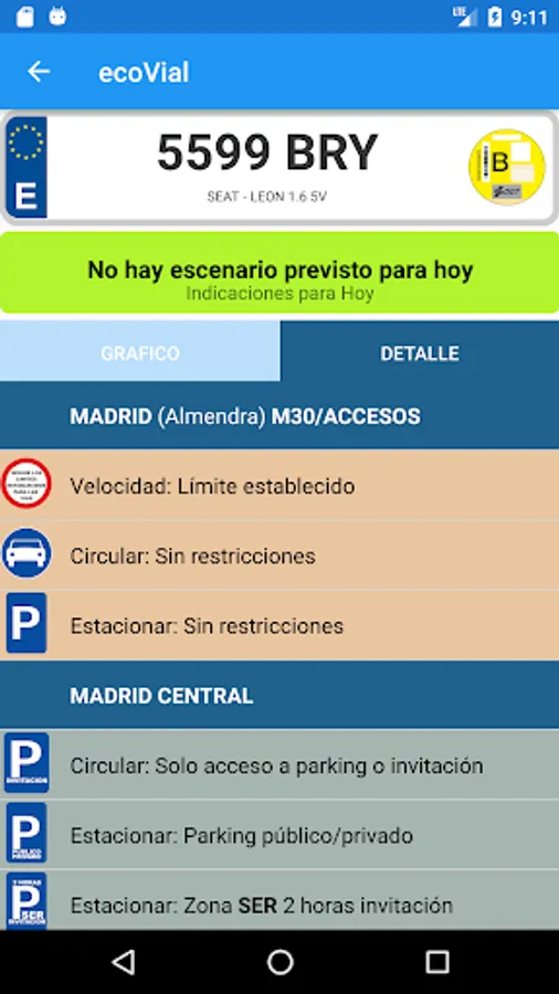 Drive safely through Madrid and its accesses with useful and updated information on daily pollution scenarios in conjunction with the sticker on your vehicle.