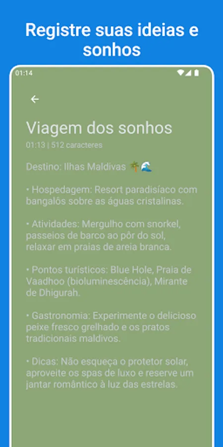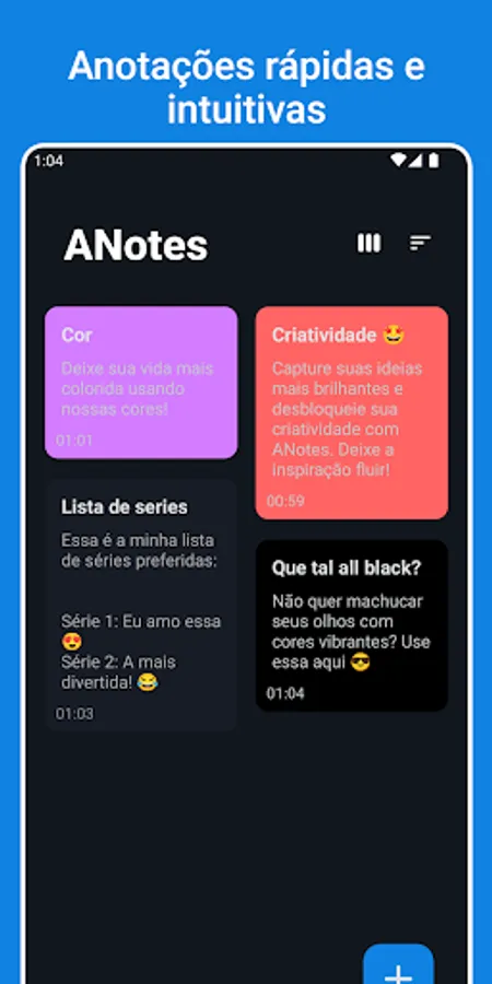 Fast and Intuitive Creation: Capture ideas in seconds, thanks to the intuitive interface that allows you to create notes in an agile and uncomplicated way.