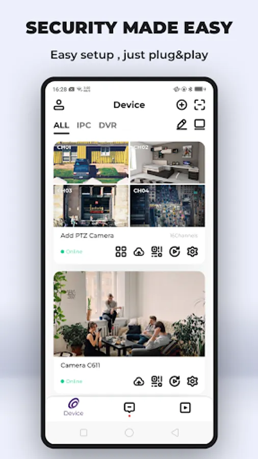 View recorded video and stream live footage whenever you are connected to WiFi or cellular networks (LTE/4G/3G) and while your Loocam DVR is connected to the Internet.
