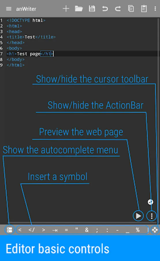 Allows you to get a quick preview of your web page. You don't need to open a browser. A JS error console is included.