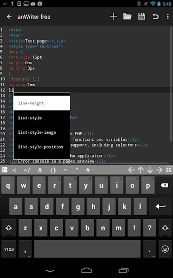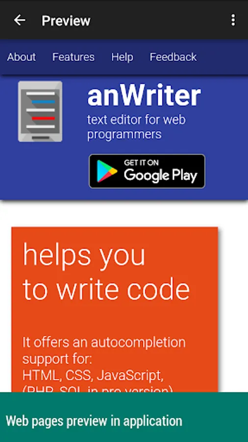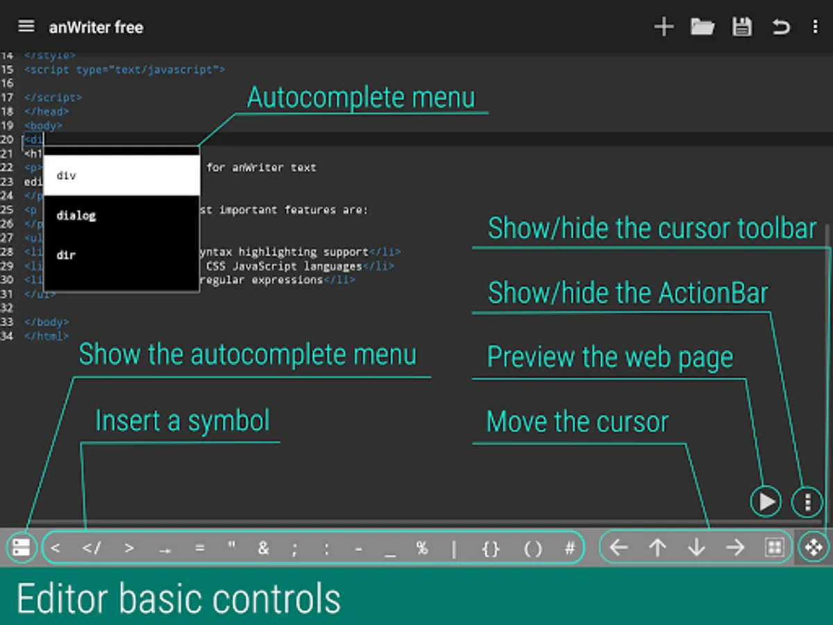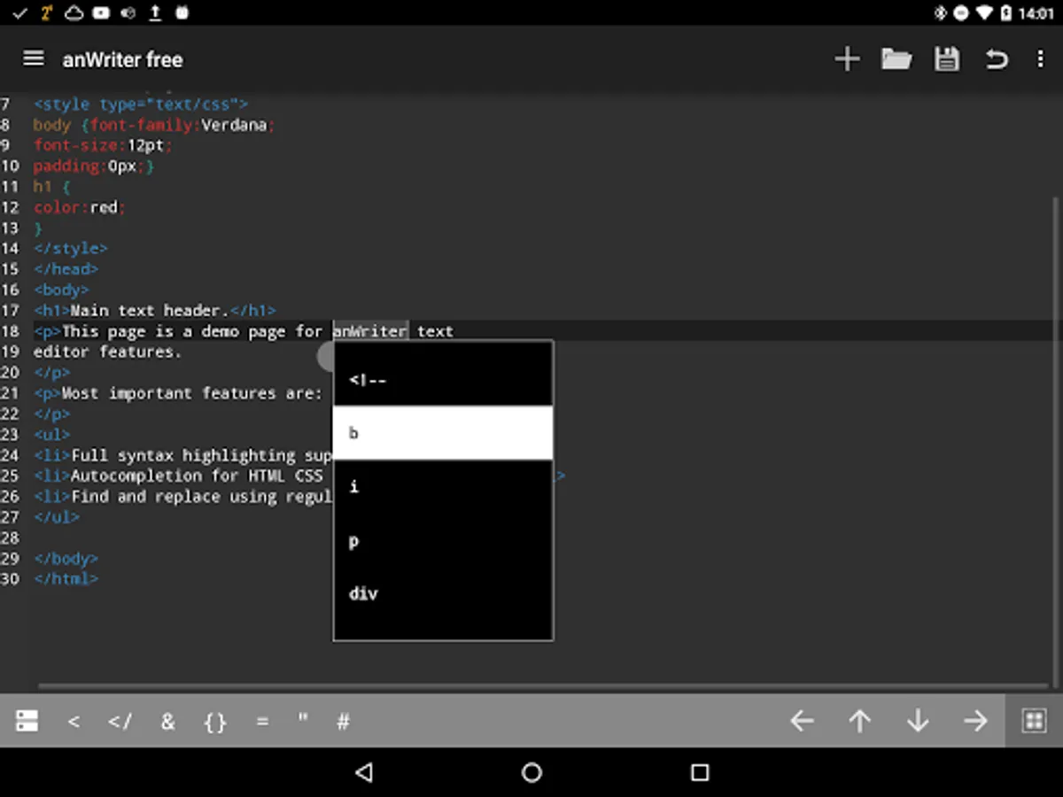 You can use our editor as a simple notepad, bit it offers features of a powerful IDE. Like in most powerful IDEs, its features allow to significantly increase coding speed, compared with a usual notepad. anWriter is much lighter than most IDE, but at the same time much more powerful, than most of notepad like editors.