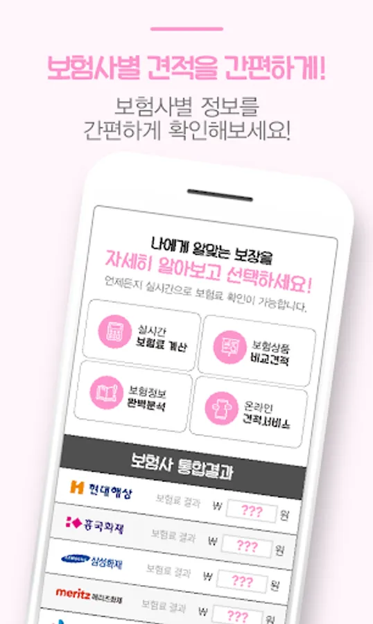 ◆ You can compare insurance products of various domestic insurance companies including Hyundai Marine & Fire Insurance at a glance.