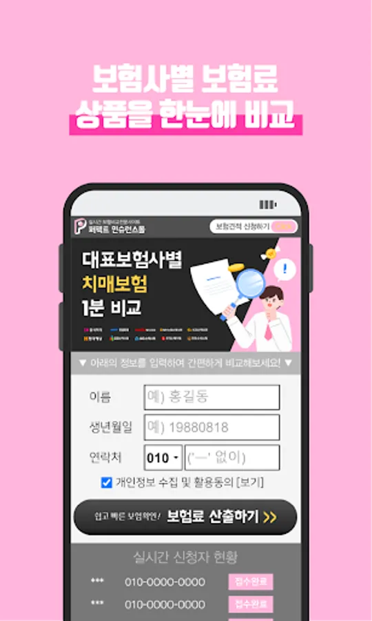 ☞ We will help you sign up easily. Mobile Dementia Insurance Real-time Insurance Premium Comparison Estimation App to sign up quickly and easily!