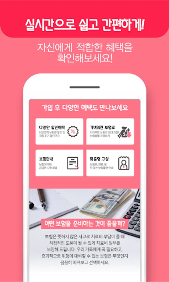 What is the best insurance for me? 실비비이 아성사이트 사이스트 꼼꼼하고 바이보기 아시하세요 through the app! 모니로 이이트 보이이사별 보이라라의 사자다의 자다. View and compare quickly and easily via the app without any authentication procedure. You can easily check the benefits that are suitable for you.