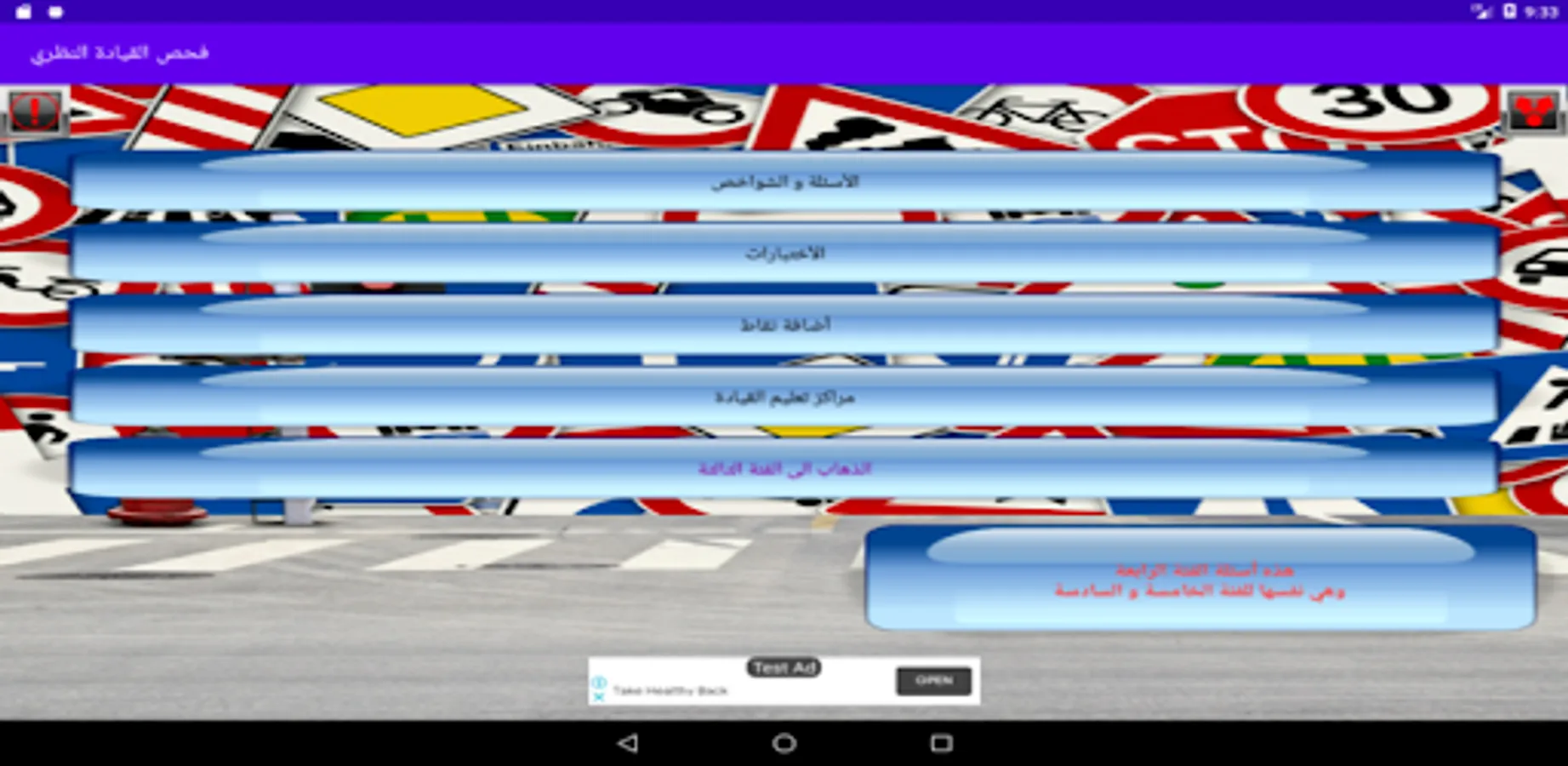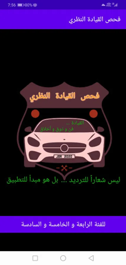 The theoretical driving test application, consisting of a large number of questions, characteristics and pictures that will meet your needs for success in the theoretical examination, after your use of this application you do not need to look for another place to study on the test,