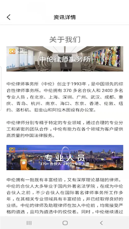 中伦伦敦办公室(“中伦伦敦“) 成立于 2012 年 5月,目前拥有7位合伙人和超过40名专业人士,是中国律师事务所在欧洲设立的第一家分所,亦是迄今为止唯一一家经英国本地律师监管机构(SRA)授权,具有英国法律执业能力并且可以同时提供英国和中国法律服务的英国律师事务所。由于业绩斐然,中伦伦敦荣获 The LawyerEuropean Awards 颁发的“年度最佳律师事务所”称号,并于2020年获得胡润百富颁发的“英中杰出贡献奖”。