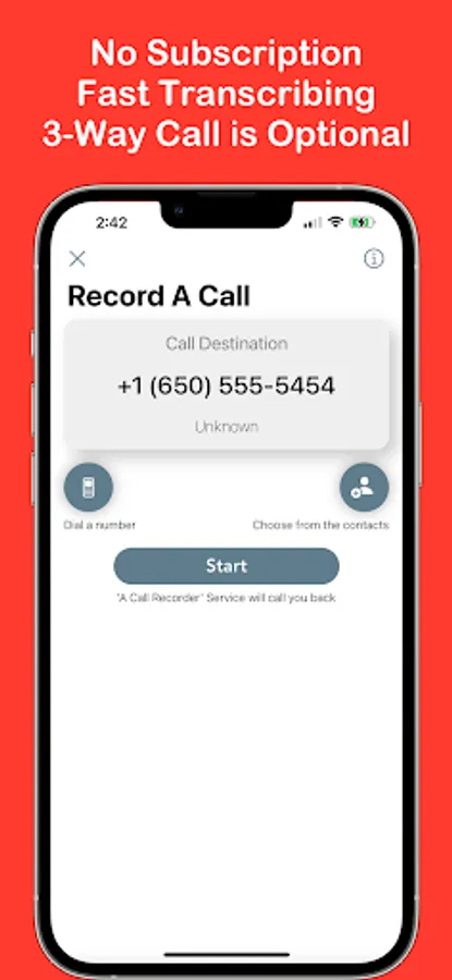 - Tap the 'Record A Call' button and choose or dial the destination number.