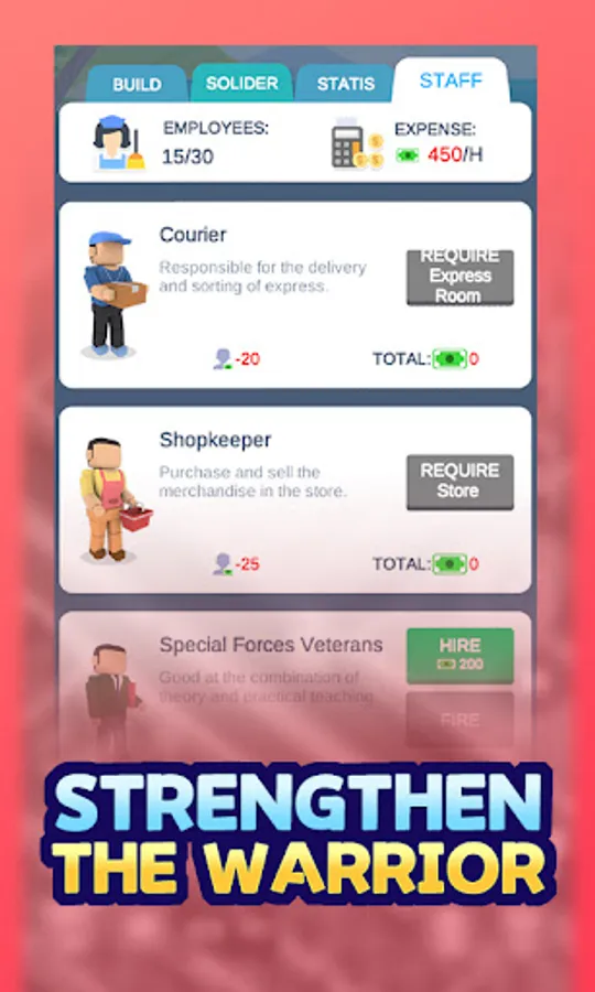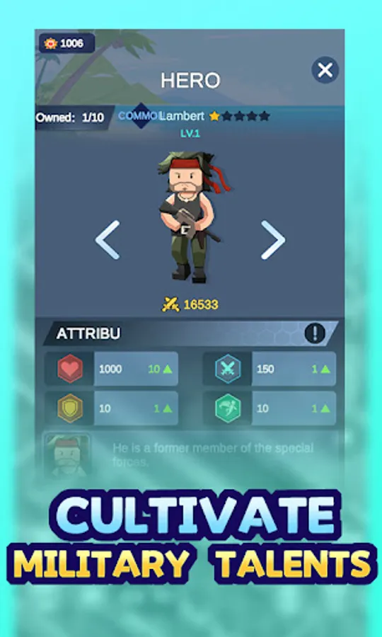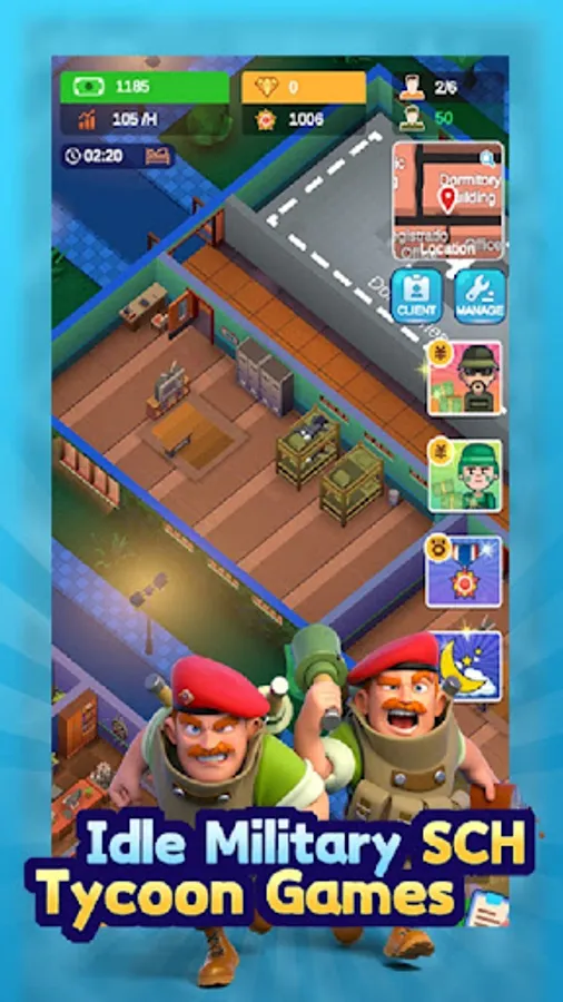You will start as a soldier from army training camp, gradually become an officer and take charge of the entire military base. In the game, players can also invest in the construction of the army, allowing you to train batches of officers and participate in the battle. You will earn money and expand your camp, making your military base more complete and training better soldiers and officers.
