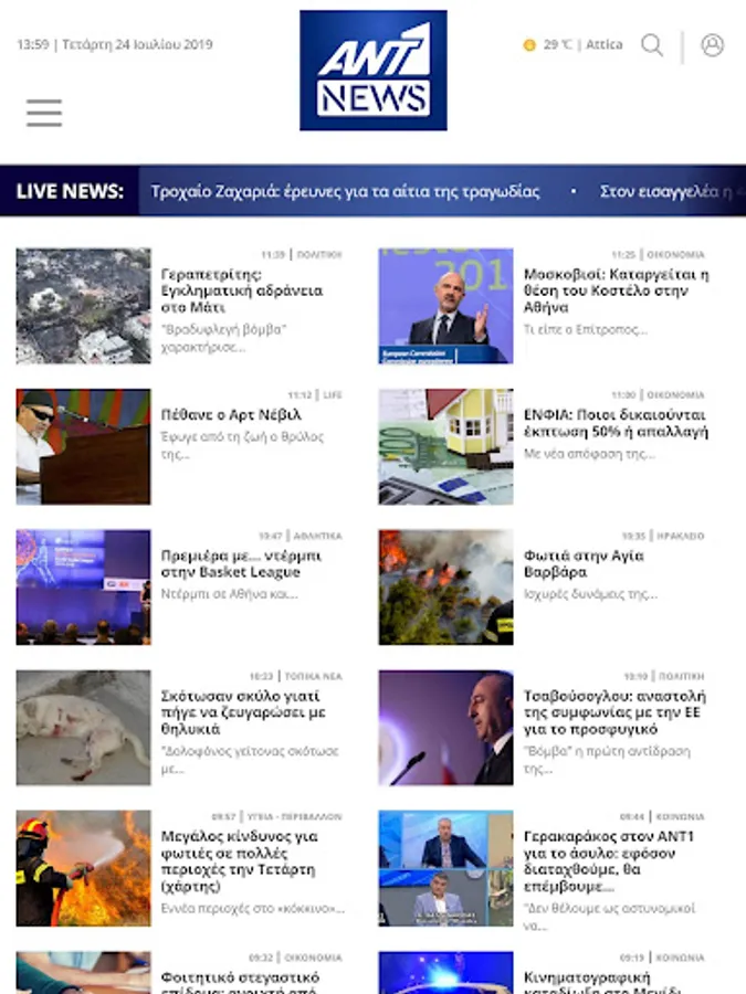 News from ANT1, the most reliable and reliable TV channel. Immediate and continuous renewal to inform you of the best journalists.