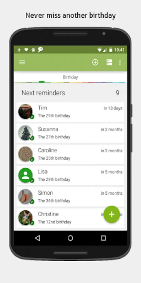 Birthdays and anniversaries are imported from contacts/phone book. If available, the reminder may give you the age that person will turn.