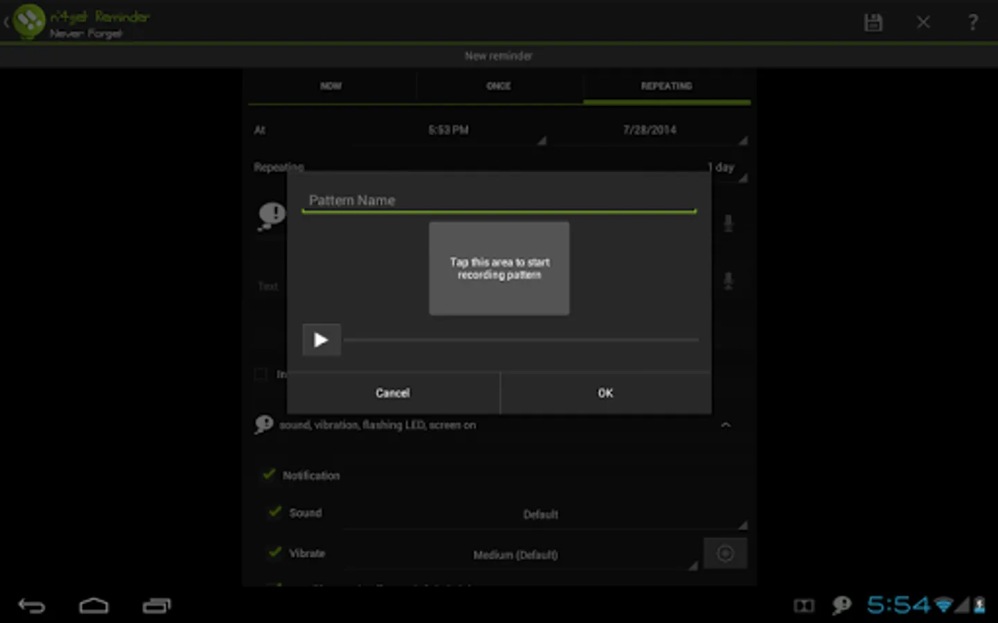 A fun way to customize reminders are vibration pattern. Create your own pattern by tapping and holding the screen for a few seconds. There are also stock vibrations included.