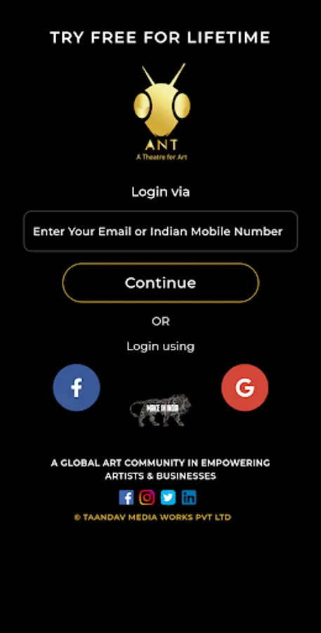 With a vision to unite and respect professionals and talents from around the globe "ANT - A Theatre For Art" is a masterpiece of technology in the OTT jungle, ANT houses a monetizing "Live Theatre" that allows anyone to stream and earn from any remote location along with a market place that allows you to upload your business images/ video ads to trade & network globally.