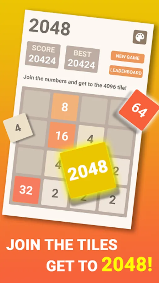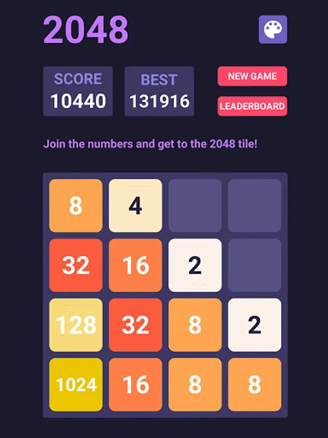 🏅 Swipe to move all tiles. When two tiles with the same number touch, they merge into one.