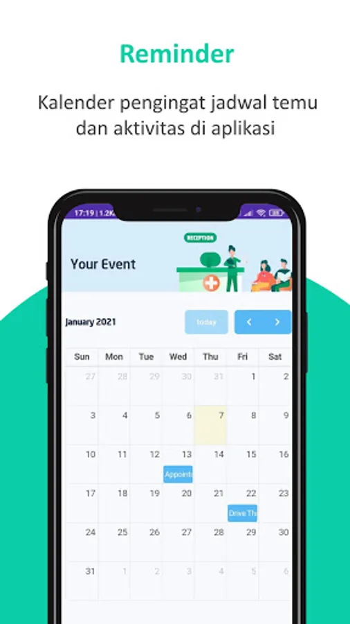 - Notification reminders and calendar of doctor's appointments, telemedicine schedules and taking medication