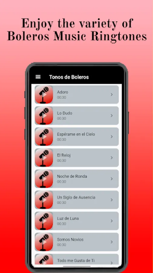 For those who love to have a device with a perfect ringtone, the app that I share with you contains a great variety of sounds and mixtures of instruments of the most listened and famous ancient boleros of all time, which you can use as tones calls, alarms and notifications completely free.