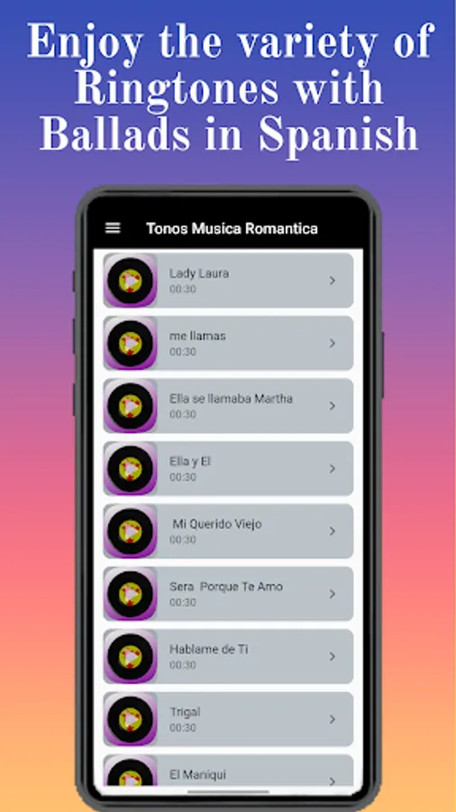 For those who love to have a device with a perfect ringtone, the app that I share with you contains a great variety of sounds and mixes of instruments from the most listened and famous romantics in Spanish from the 80s and 90s of all time. , which you can use as ringtones, alarms and notifications completely free.