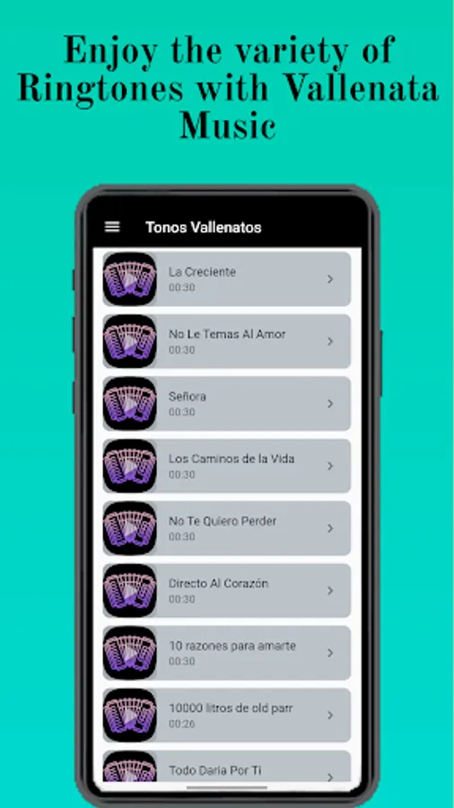 Our App contains a great variety of ringtones with sounds of the best of romantic vallenata music that will make your Android device unique in its notifications, alarms or calls.