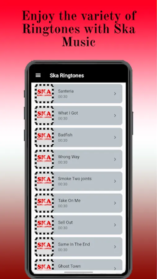 Our App contains a great variety of ringtones with the best ska rock sounds of the 80s that will make your Android device unique in its notifications, alarms or calls.