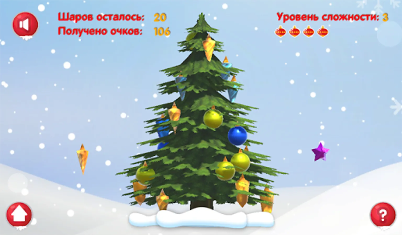 - “Dress up the Christmas tree” - click on the screen to the right and left of the Christmas tree to dress it with toys.