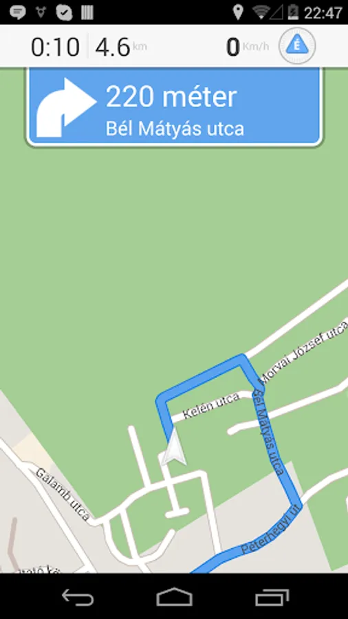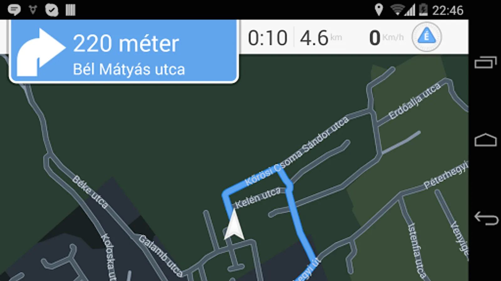 - A navigáció figyelembe veszi a város aktuális forgalmát és a leggyorsabb útvonalat igyekszik megtalálni.