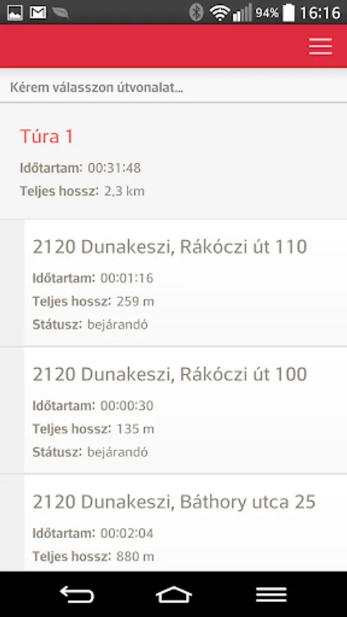 - Completed, canceled and have not yet navigated addresses marked on the list,