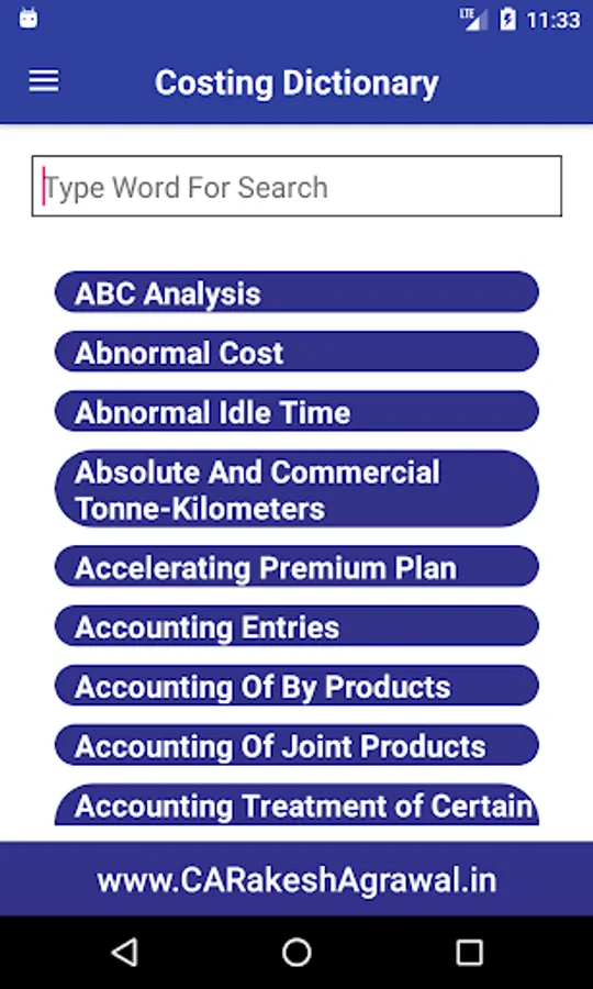 CA Rakesh Agrawal's White Labelled App is a learning management system that offers a range of features to students preparing for the CA course. The app includes MCQ exams, video lectures, live classes, and other learning resources also CA Costing Dictionary By CA Rakesh Agrawal. Best Resource For The Aspiring CA IPCC Final Student To Understand The Costing Terms In Easy Convenient Manner. The Dictionary Allows Student To Search Various Costing Words. It also allows Text To Speech Functionality.