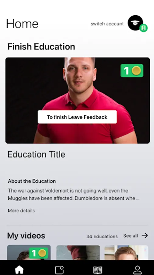 Users can create educations or receive content which enables learning and completing educations.Depending on your needs, we offer an app version with both profile types or app version which separates both roles.