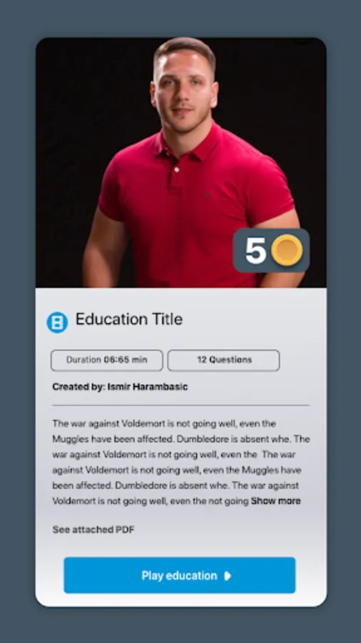 Whether a user has learned something based on in or not will be determined by completing a Quiz after each education part.