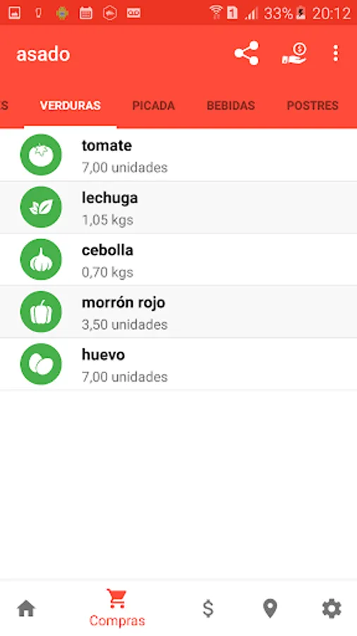 • Compartir la lista de compras con tus amigos para organizar quién compra qué cosa fácilmente