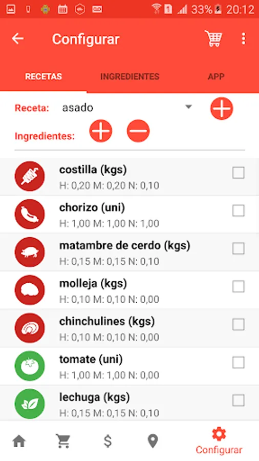 • Calcular los ingredientes y cantidades para hacer las compras, organizadas por categorías: carnes, verduras, picada, bebida, postre y otros a tener en cuenta como el pan, el carbón y el hielo.