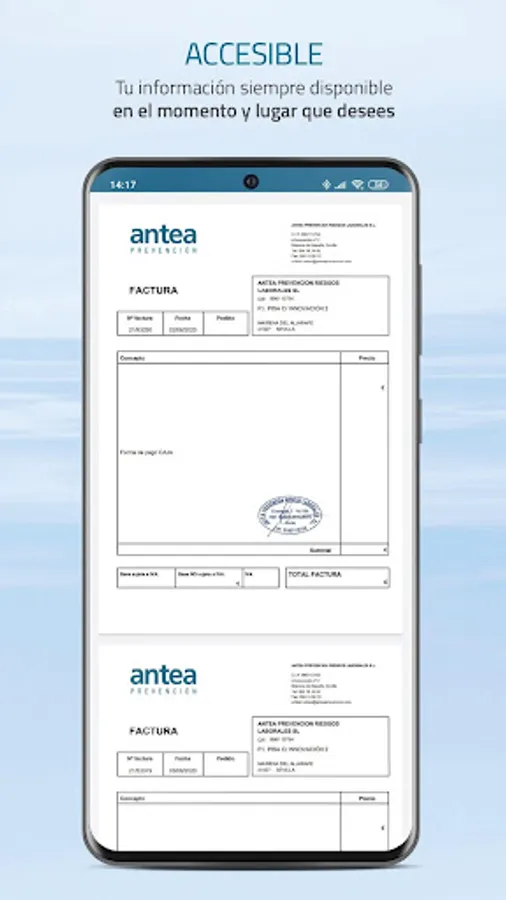 Antea Empresa allows you to effectively control and record your company's billing regarding Occupational Risk Prevention.