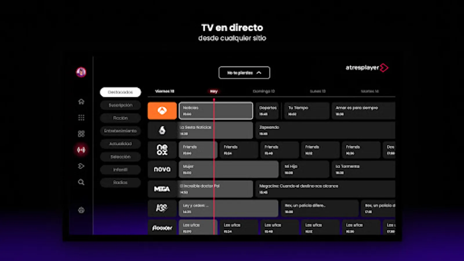 atresplayer is the entertainment platform for watching live TV from Atresmedia, where you will find the best series, movies, programs, news and documentaries from Antena 3, laSexta, Neox, Nova, Atreseries, Mega, Flooxer, Classics, Multicine, Comedy and Kidz.
