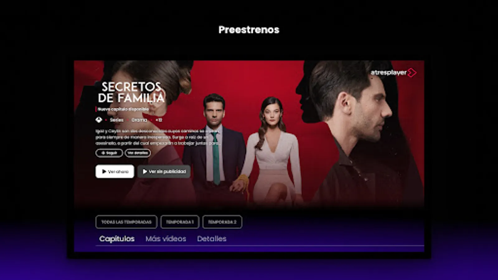 atresplayer PLAN premium and atresplayer PLAN premium family are the subscription packages with which you can access the best and most extensive catalog of ATRESMEDIA streaming content, with original programmes, movies, series and exclusive premieres and scoop.