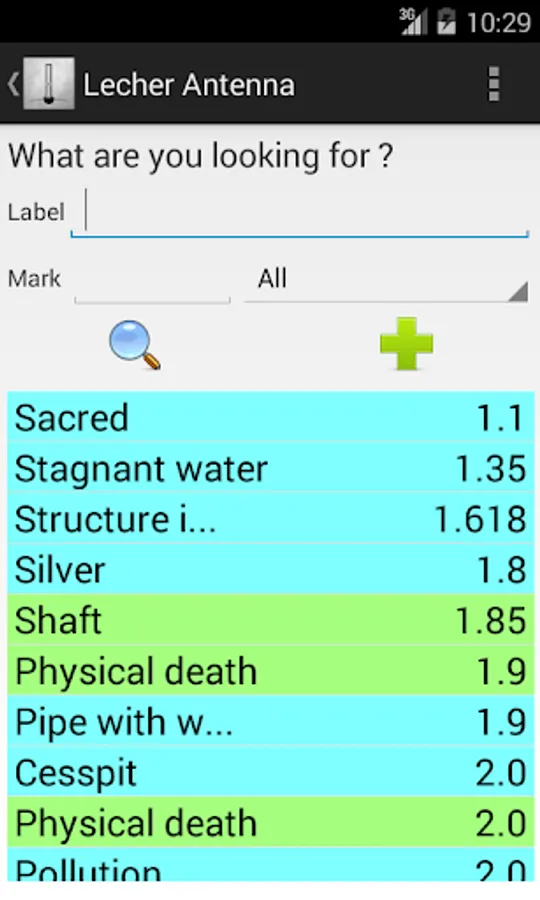 For example, if you want to know the marker for the Hartmann network, simply type hartmann in the search field. The application will show you the marks 10.0 and 12.0.