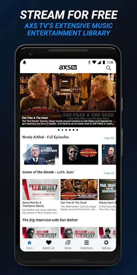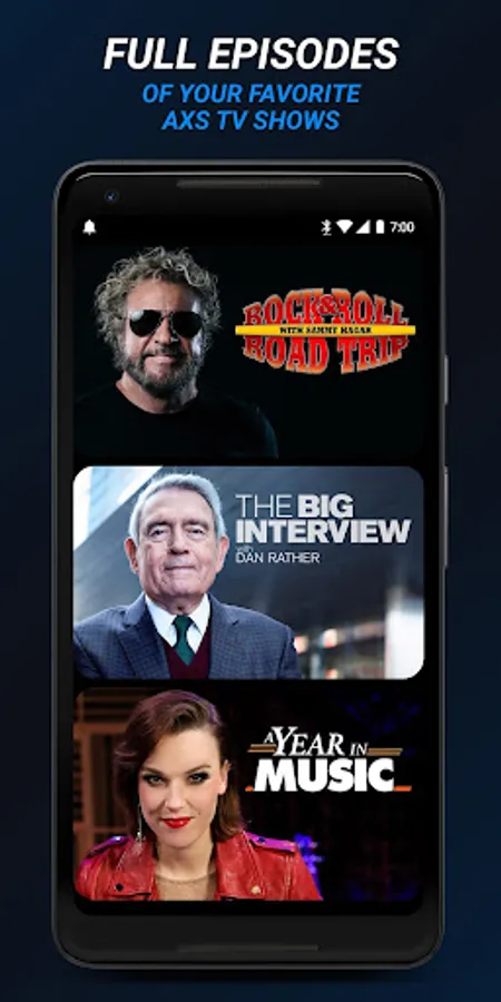 "Watch full episodes from AXS TV's extensive music entertainment library, exclusive sneak peeks of upcoming shows, and never-before-seen digital exclusives, all for FREE!