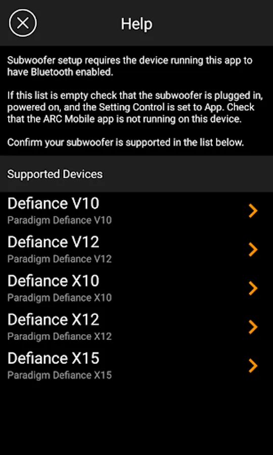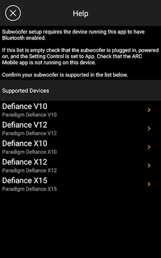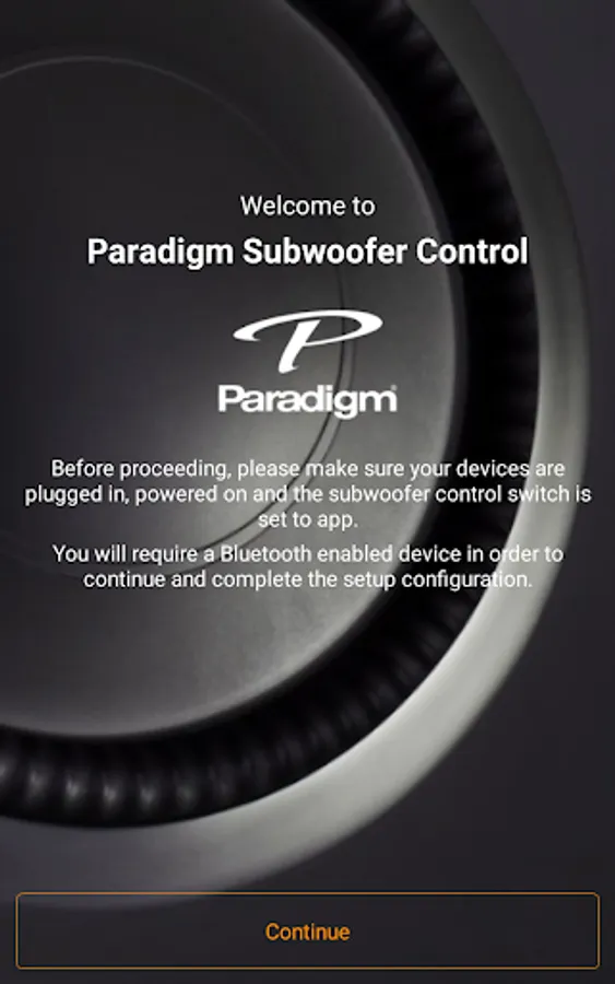 The Paradigm Subwoofer Control App uses a Bluetooth connection to simplify setup and configuration of compatible MartinLogan subwoofers.