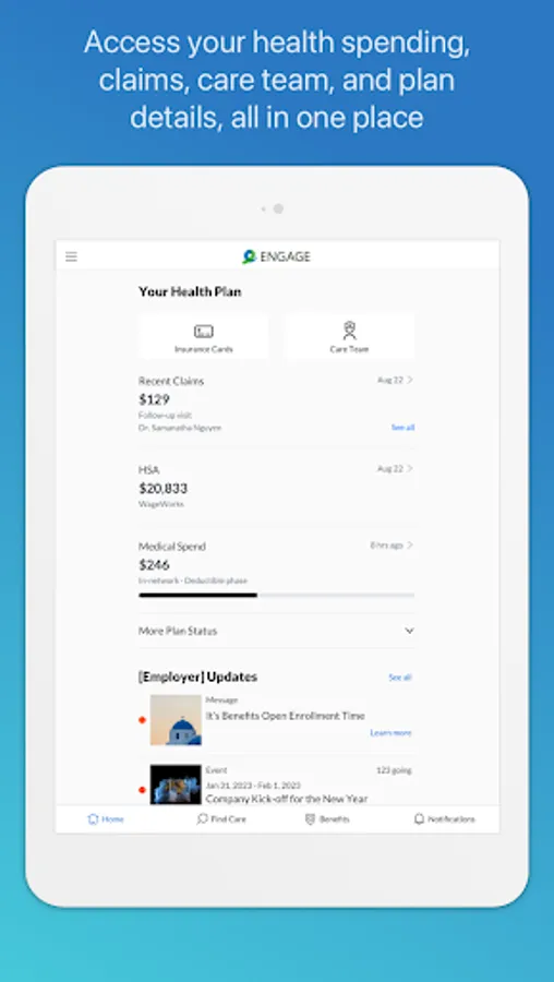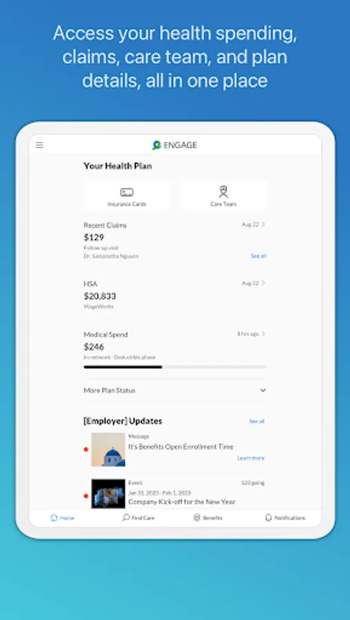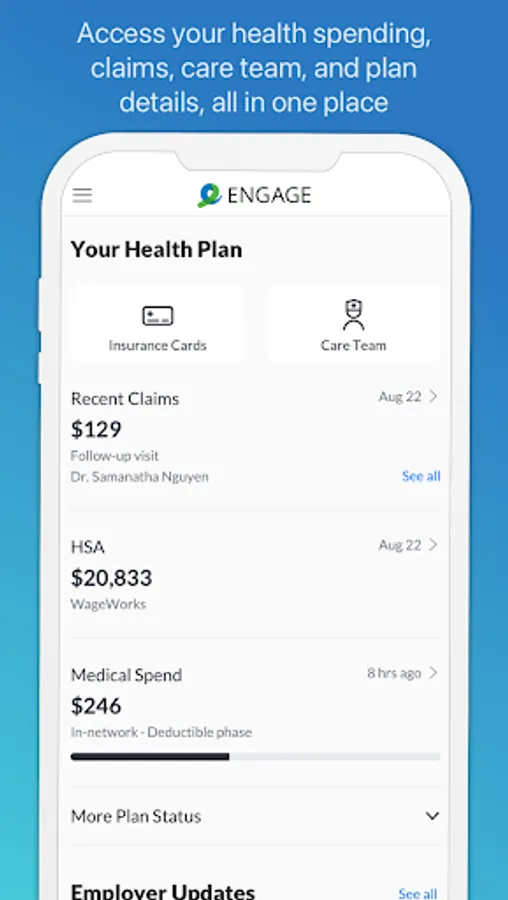 Engage Wellbeing’s healthcare management app is available exclusively to individuals and their dependents who have access to Engage through their employee benefits program. Your app features will vary depending on how your employer is set up. Not sure if your employer offers Engage? Ask your Human Resources department.