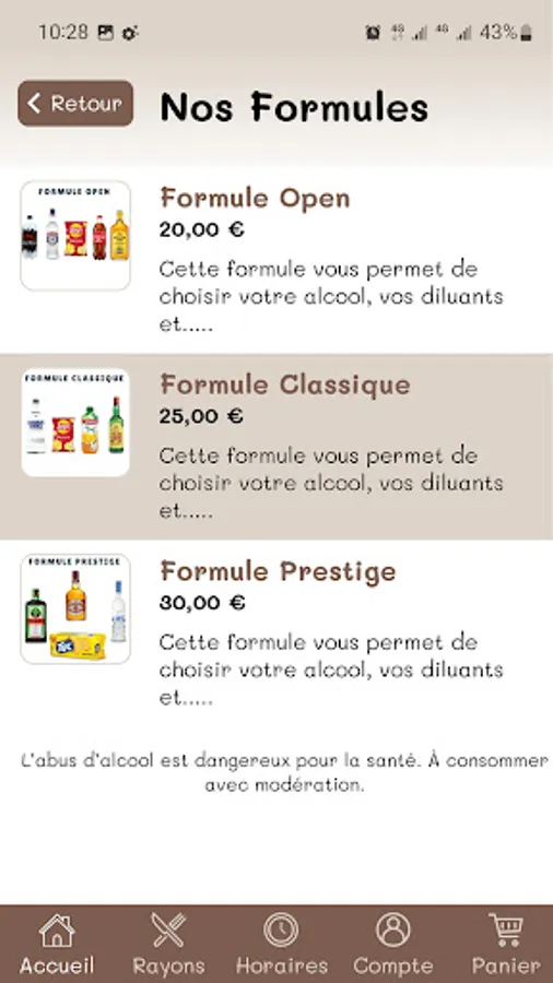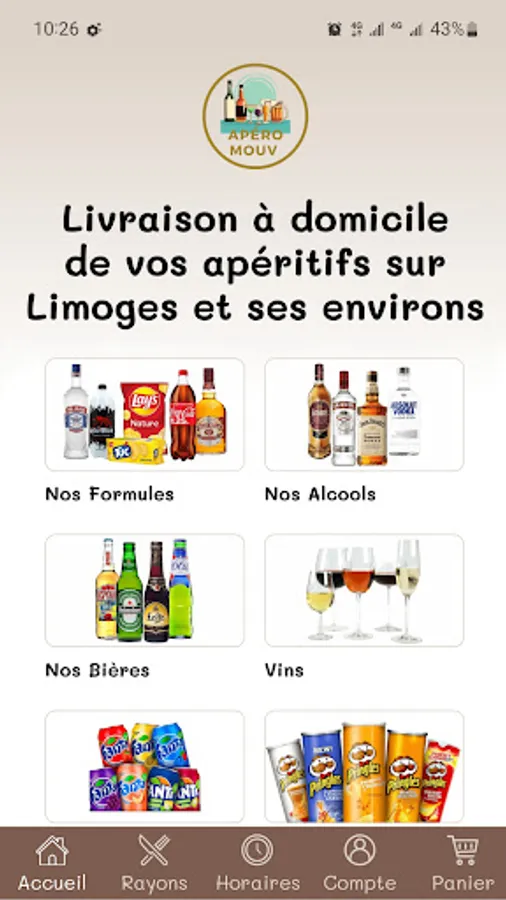 Our mobile app allows you to order your alcohols, thinners, accompaniments and various formulas that we deliver to you 7 days a week in Limoges and its surroundings (within a radius of 7 km around our establishment.