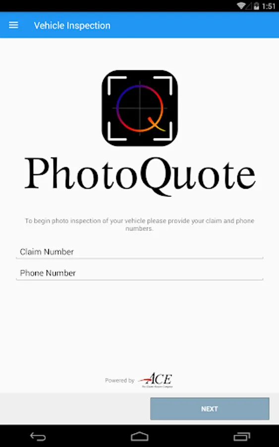This app allows ACE customers to upload damage photos of their vehicle to complete their claim.