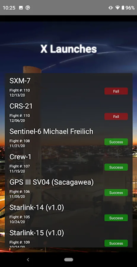 View details and photos of rocket and satellite launches