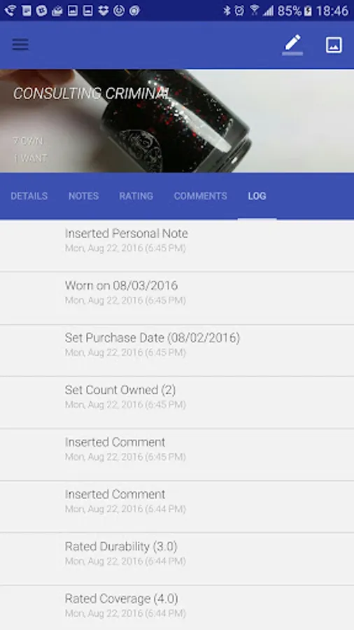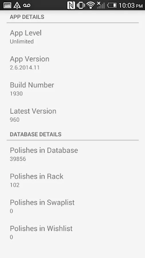 2. Pro Version (In-App Purchase) - This version is limited to 100 max polishes in your rack. Ads are removed and you have full features available to you.